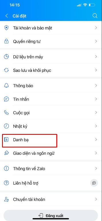 Bước 2: Tiếp tục nhấn vào mục Danh bạ.